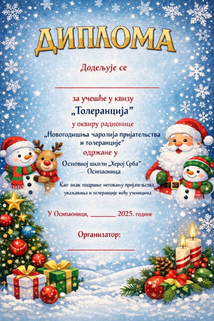 У нашој школи Ученички парламент је организовао радионицу под називом „Новогодишња чаролија пријатељства и толеранције“, која је окупила ученике и наставнике из следећих школа: ОШ „Доситеј Обрадовић“ из Вранова, ОШ